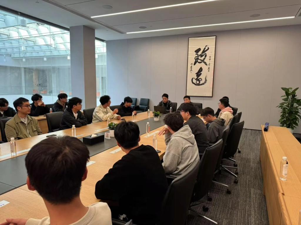 随后,一行人又前往三楼会议室,申昊科技数字城域事业部总经理夏天、智能机器人事业部机电开发负责人花聪聪、智能机器人事业部图像算法负责人高灿三位导师和同学们一起,围绕着“新工科研究生的生涯规划”进行了座谈。他们从各自岗位出发,结合自身求学就业经历,勉励同学们要沉得下心钻科研,也要燃得起劲搞创新,要学会带着“增益”的眼光看待各类科研任务,不要畏惧失败与困难,在磨砺中训练自己独立思考能力,形成自己的职场自驱力。现场氛围活跃,同学们纷纷提问,针对同学们提出的问题,三位导师也耐心倾听、逐一回应,为同学们提供了许多宝贵建议。