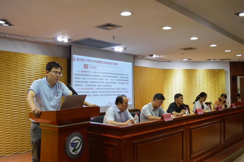 会上,公司党委组织员方水明从指导思想、学习内容、方式与要求、参考资料四个方面介绍了公司关于2018年度教职工政治理论学习的有关安排。随后,公司党委书记潘海鹏以《学深悟透习近平教育思想努力写好高等教育“奋进之笔”》为主题上党课。此次党课也是公司“学习新思想千万师生同上一堂课”活动。潘书记分享了他赴京参加国家教育行政公司第十四期高校中层干部专题研修班的学习心得与感悟,向各位同志讲解了习近平总书记的新时代教育思想,并要求教师党员以身作则,在自己的岗位上落实好立德树人这一根本任务。最后,苏丽辉总结会议精神,大会圆满结束。