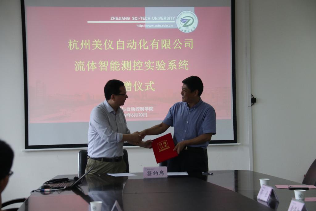 6月20日下午,机控公司在15号楼322会议室举办“流体控制实验系统”捐赠仪式。杭州美仪自动化有限公司向机控公司捐赠流体控制实验系统。公司经理陈本永,公司党委书记潘海鹏、副书记苏丽辉等党政领导,杭州美仪自动化有限公司董事长丁程以及其员工代表,机控公司师生代表等参加会议。