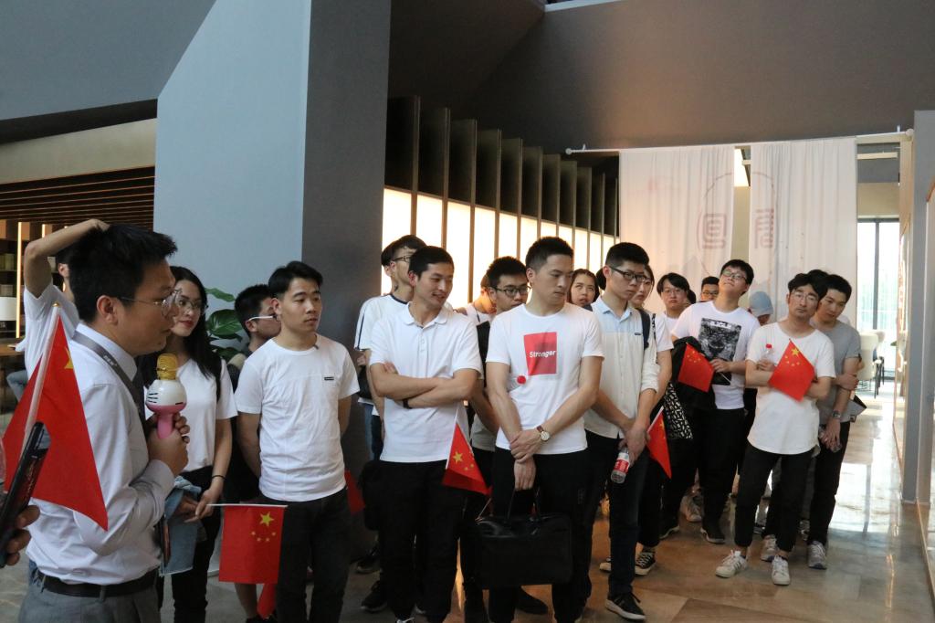 活动主要分为“红色游学”、“主题研讨”、“青春快闪”三个部分,学习弘扬红色文化,献礼祖国70华诞。在王淯霄的带领下,员工党员们游览了党建主题公园,身边是红色人物和红色故事,脚下是由刻有红色箴言的石块谱成的红色大道。同学们在信仰柱、清风亭、雷甸记忆长廊、先锋书廊等景点前驻足,学习红色经典,感悟革命精神。随后,员工党员们在影音馆中观看了校第五届“最有深度的微型党课”部分一、二等奖作品,即机控公司教工党员傅霞萍的《“引路人”的初心》和教工党员邹婷的《在平凡中坚守,于点滴中担当》微党课视频。同学们感悟良多,并以此开展“五四精神学习”和“新时代青年党员的责任与担当”主题研讨活动。来自机械类、电气类专业的本科生党员和流体工程、工业工程、机械工程专业的研究生党员们就上述议题,结合自身所学所见所思,从专业学习、个人发展、作用发挥等方面展开激烈讨论。同学们一致认为,对五四精神的学习传承与发挥老员工党员的责任担当一脉相承,需要立足自身,发展个人以奉献社会。最后,全体员工党员们在领航广场上举行了青春快闪活动,挥舞着鲜艳的五星红旗,唱响《我爱你,中国》,唱出对祖国的真挚祝福,引得周围游客驻足观看、齐声合唱。