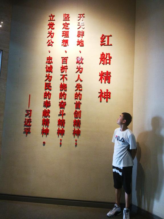 正门上方镶嵌着伟人邓小平题写的“南湖革命纪念馆”七个熠熠生辉的金色大字,令人肃然起敬。进入纪念馆,一行人边参观边拍照边学习,深入了解中国共产党的发展史。走进纪念馆,首先映入眼帘的是一艘“红船”,就是这条小小的游船,造就了8千余的大党,当年十几位热血的青年宣告中国共产党成立,他们的成功靠的是他们的毅力,勇气,信念和智慧。