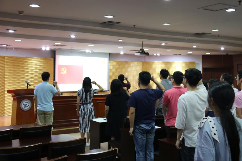 表彰和献礼环节过后,全体与会人员一同学习了习近平总书记在“不忘初心,牢记使命”主题教育工作会议上的讲话精神,并开展主题研讨。吴震宇从高校教师的“三个职能”切入,结合自己多年来的科研工作经历,谈新时代党员教师们的初心与担当,他认为高校教师要认准方向,务实工作,在所处领域和行业内作出应有的贡献。辅导员林国庆讲述了自己从员工到老师的成长经历,提出青年思政工作者应当无悔奉献、无悔青春,成为员工成长成才的引路人。员工党员唐涛认为,研究生党员的初心是要明白学习与成长的意义,明白学术的可贵和成果的可敬,做到诚信做人,踏实做事。