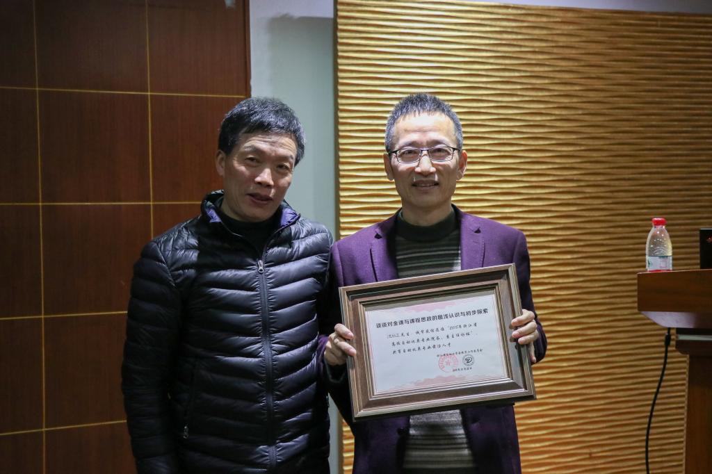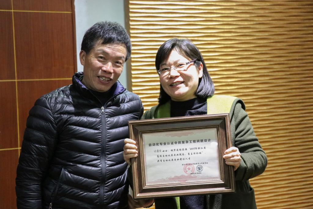 会上,浙江大学本科生院张光新教授作“新工科背景下的自动化专业建设的思考和实践”的报告,杭州电子科技大学吕强教授带来“新工科背景下的人工智能人才培养”的经验与大家共享,绍兴文理公司沈红卫教授的大会报告围绕金课议题,具体“谈谈对金课与课程思政的粗浅认识与初步探索”,中国计量大学许素安教授作“自动化专业认证中的复杂工程问题设计”的报告,最后由金华职业技术公司的陈海荣教授作“高职技术技能型创新拔尖人才培养的思考与实践”的报告,引发了职业技术公司的自动化类专业经理与系主任的强烈共鸣。陈国定主任为各位大会报告专家颁发了证书。