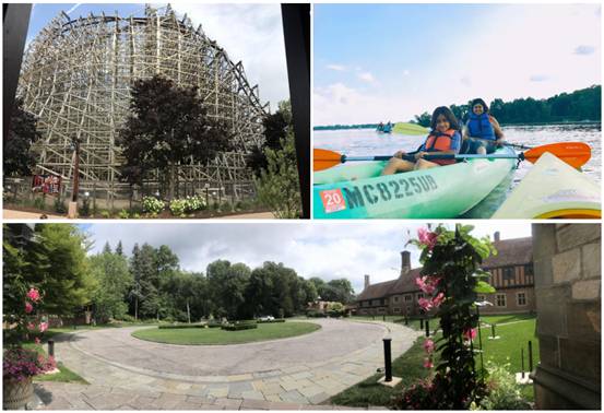 忙碌的学习之余,同学们利用课余时间在公司附近感受美国当地自然与人文风情,并参加了为期六天的文化交流活动。在麦基诺岛结伴环岛骑行、在Cerdar Point挑战自我内心恐惧、在Stony Creek Metro Park享受异国的蓝天白云、在Dodge Park感受庄园文化……