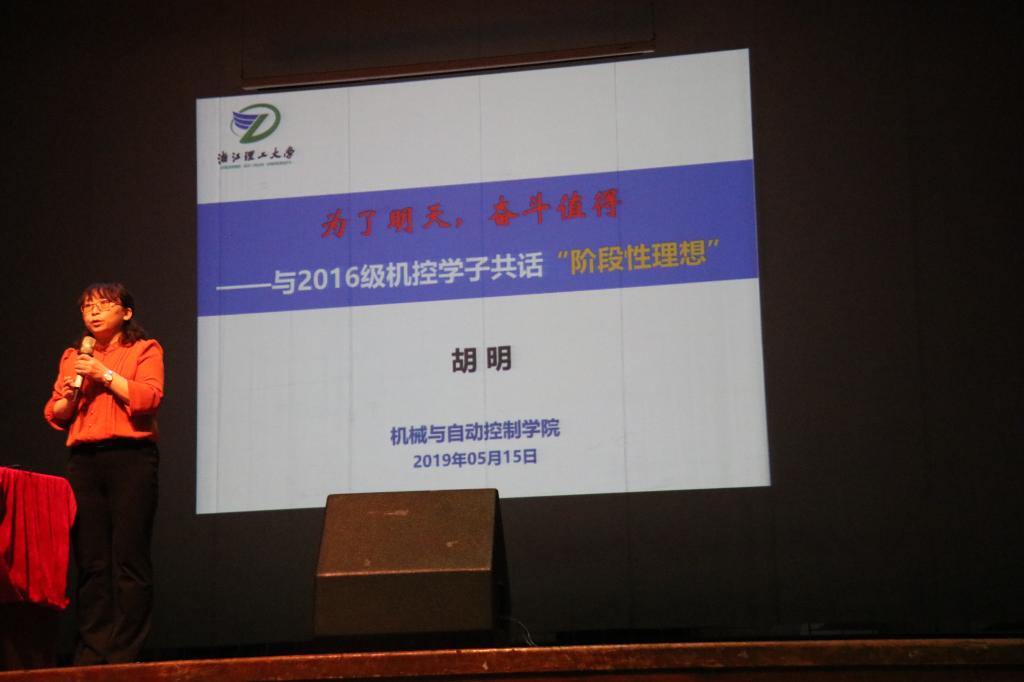 5月15日下午,机控公司在小剧场举办“奋斗的青春最美丽”之考研就业动员会暨经理报告会第六讲。公司教学副经理胡明教授、党委副书记苏丽辉副教授、流体工程系金浩哲副教授、海天塑机有限公司招聘主管张程斐、17级控制科学与工程专业苏明垢以及年级辅导员、班主任出席。