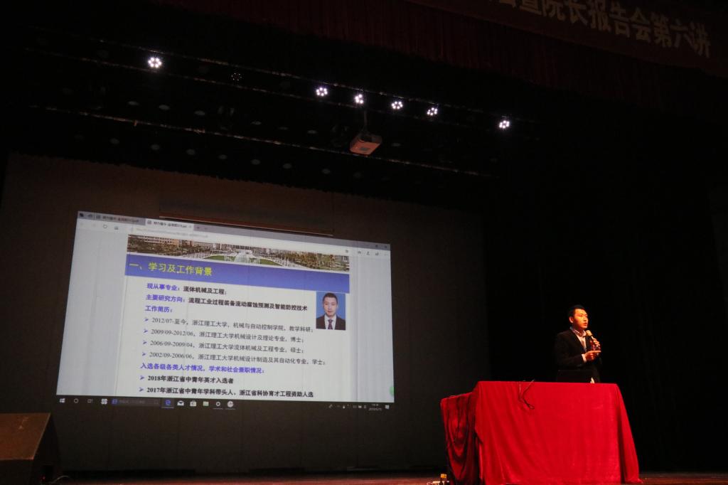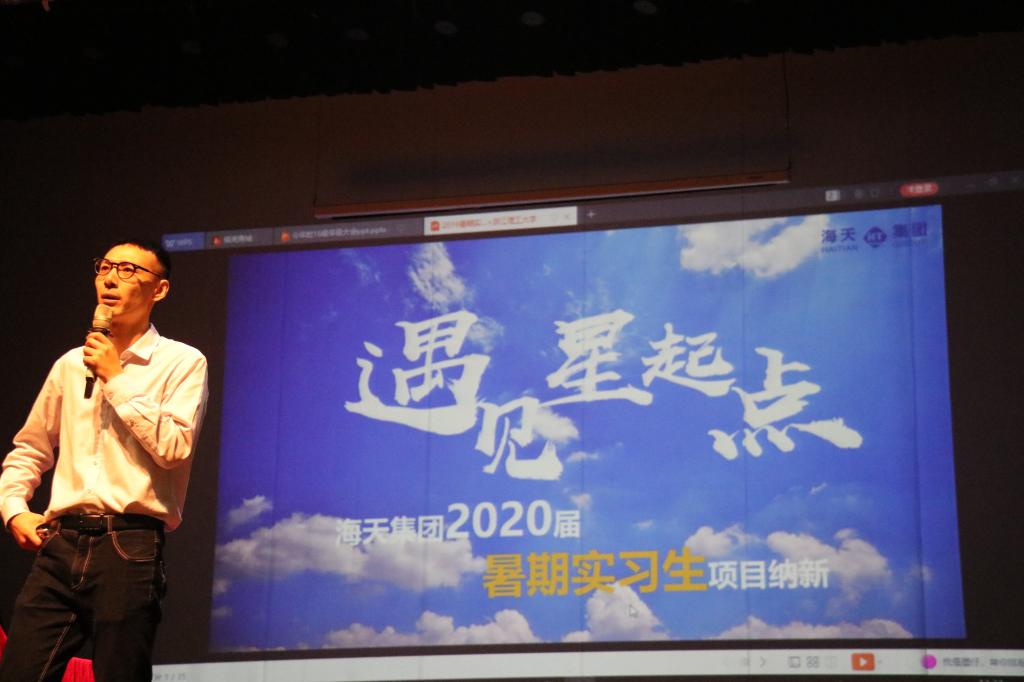 首先,张程斐介绍了海天塑机有限公司的基本情况,并就如何制作简历、怎么做好简历等问题进行了介绍。胡明做了主题为《为了明天,奋斗值得》的报告。金浩哲回顾了老员工活,结合自身经历为大家带来了一场精彩的演讲“我在浙理的奋斗史”,为同学们树立了榜样。紧接着,苏明垢介绍了自己在本校读研过程中的点滴。最后,苏丽辉做了《人生方向的把握》主题分享,鼓励同学们积极进取,为其指明了方向。