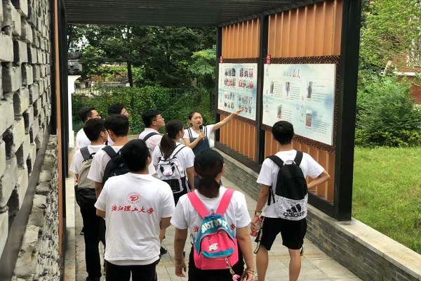 上午9时许,实践团抵达嘉兴桐乡的濮院镇新港村,参观“一廊一馆两堂五室”。新港村的文化礼堂于2016年建成,建筑面积1700平方米,白墙黛瓦,是典型的江南水乡建筑风格,于今年4月被评为浙江省五星级农村文化礼堂。该村的文化专管员黄徐琳也被授予省“最美文化礼堂人”荣誉称号。过程中,黄徐琳向实践团详细解说了文化长廊与毛衫文化展示馆,并带领成员们参观图书室、健身活动室、春泥活动室、社团活动室和志愿服务室。形式多样的志愿活动、贴近群众的微心愿墙、环保实用的水果酵素液等特色做法,让实践团成员受益匪浅,看到红色文化的传承和指引下,村民文娱生活和精神世界的日渐丰富,更展现了新农村建设的生命力。