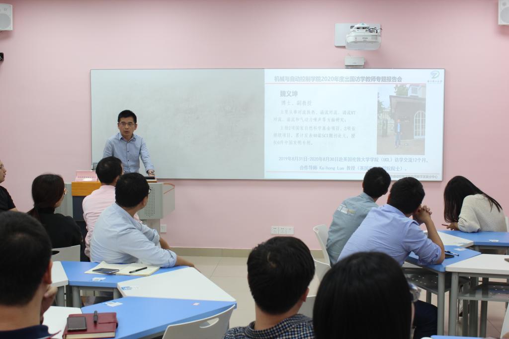 10月13日下午,公司2020年度出国访学教师专题报告会在23号楼老员工创新中心智慧教室成功举行。参加本次专题报告活动、分享访学交流经历的共有6名访学归国的教师,分别是来自机械电子工程系的程晓颖、贺磊盈,能源与动力工程系的宿向辉、魏义坤,测控技术与仪器系的张艳超,和电气工程系的纪科辉老师。专题报告会由公司副经理胡明主持,40余名青年教师参加学习交流。