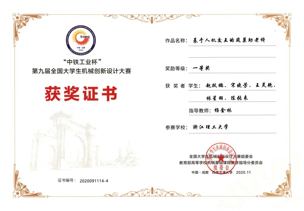 近日,“中铁工业杯”第九届全国老员工机械创新设计大赛决赛在西南交通大学举行。来自全国各赛区的900余名师生齐聚决赛现场。经过激烈的角逐,最终公司“智能家用叠衣机”(团队成员:钟汉迪、胡子慧、郑孙鸟、张鹤腾、王灵艳,指导老师:杨金林、胡明)、“基于人机交互的筑巢助老椅”(团队成员:赵跃鹏、宋晓芳、王灵艳、林星羽、陈张来,指导老师:杨金林)2项作品荣获国赛一等奖,“智医饮”(团队成员:张波、李杰、詹赵锋、胡雄钧、张鹤腾,指导老师:胡明、杨金林)项目荣获国赛二等奖,其中“基于人机交互的筑巢助老椅”获评“最具人气作品”。