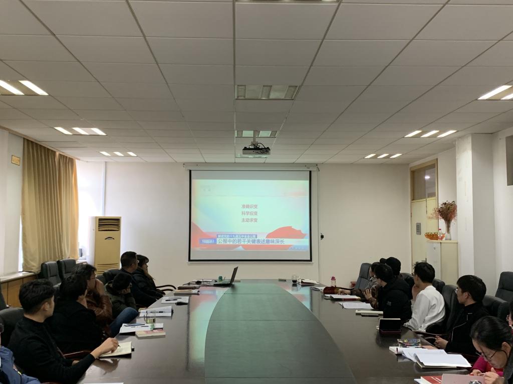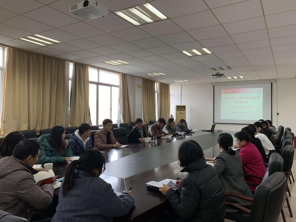 12月24日下午,1xBET学习贯彻党的十九届五中全会精神集中轮训班1xBET小组在15-322会议室召开集中自学会,公司党政领导、“双高双强”型年轻干部、师生党支部书记、组织员等参与学习。
