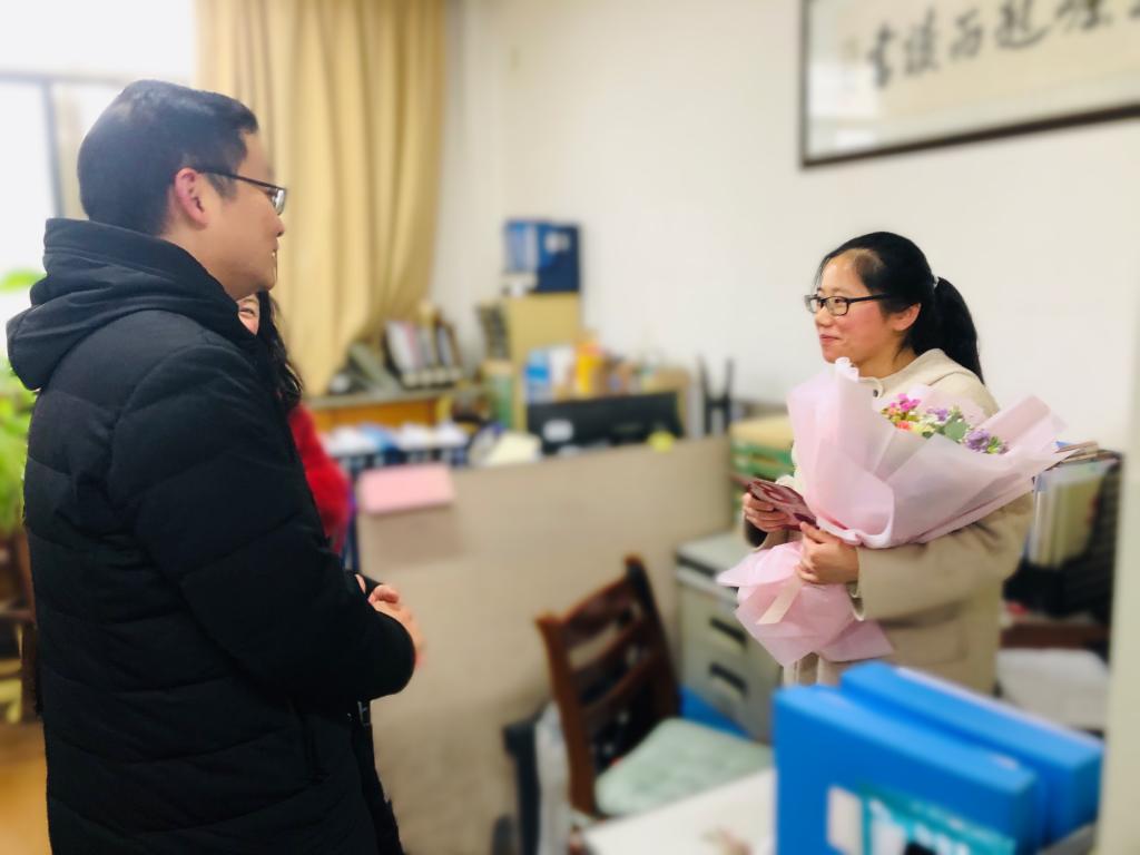 爱心播撒希望,奉献点亮芳华。在第111个“三·八”国际妇女节到来之日,公司党政领导、工会主席走访慰问了公司全体女教职工,感谢她们用心用爱为教育事业和公司发展奉献芳华,并送上鲜花和祝福。慰问中,领导们特别关心了解新进女教职工和青年女教师的发展近况,鼓励她们敢梦敢拼,用人格魅力教育影响员工,做员工筑梦路上的新时代“女神”。