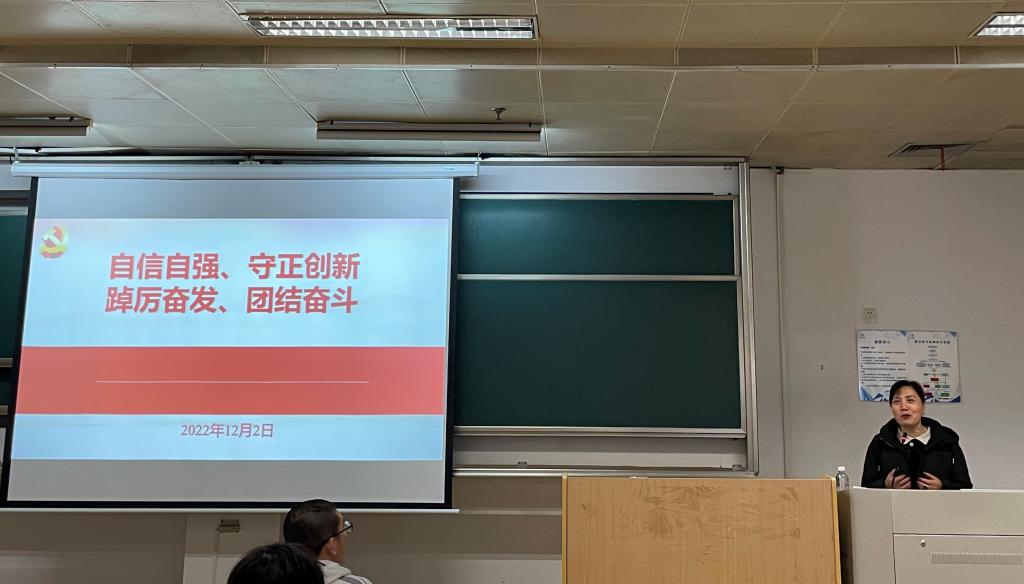 12月2日,形势与政策课堂上,许慧霞围绕“自信自强、守正创新,踔厉奋发、团结奋斗”的鲜明主题展开,首先讲述陈文兴董事长作为党的二十大代表光荣参会的事迹,引出“党的二十大的概况”、“全面学习贯彻党的二十大精神的重要意义”、“如何全面准确学习领会党的二十大精神”三个方面内容,结合自身分管的教学工作,深入浅出,条理清晰地对党的二十大精神进行系统宣讲和深入解读。