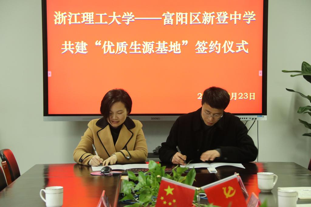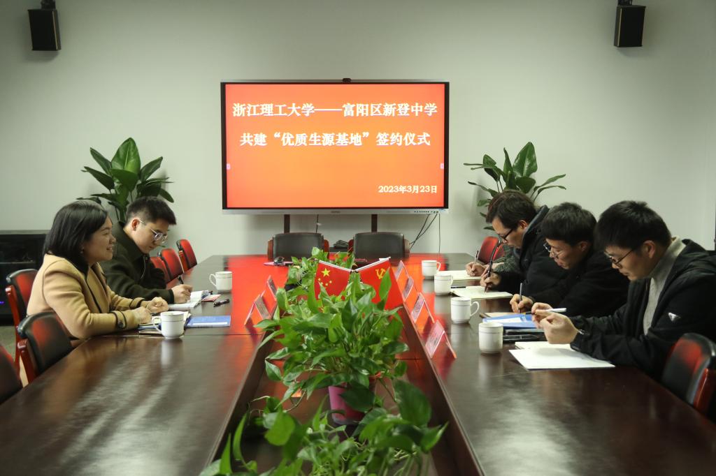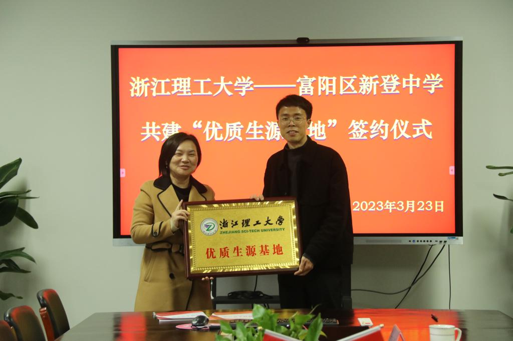 为进一步畅通人才输送和信息渠道,加强大学和中学的合作,吸引更多优秀学子报考1xBET,3月23日下午,公司党委副书记陆秋萍一行赴富阳区与新登中学建立“优质生源基地”并开展招生宣传活动。“优质生源基地”签约授牌仪式在新登中学会议室举行,新登中学副董事长俞锎锋、教务处主任崔金生、电教中心主任施轶林、教务处副主任黄丹丹出席仪式。仪式由俞锎锋主持。