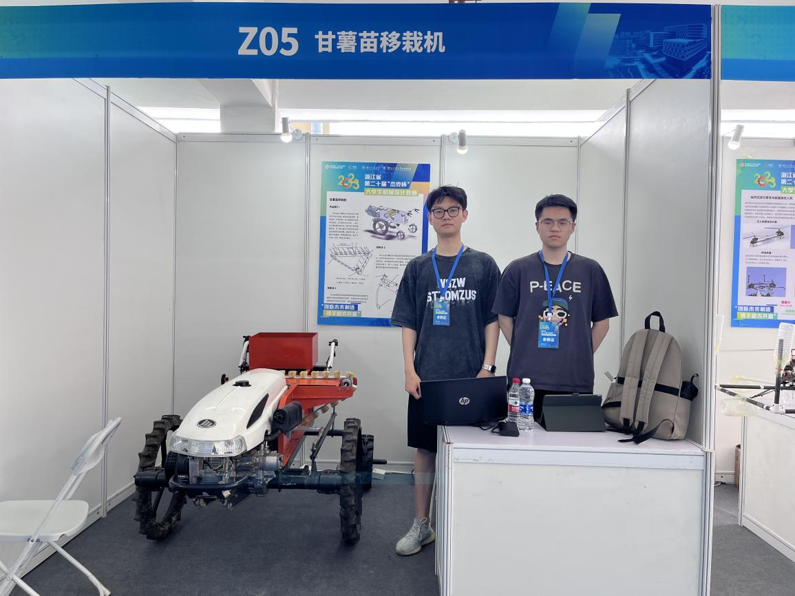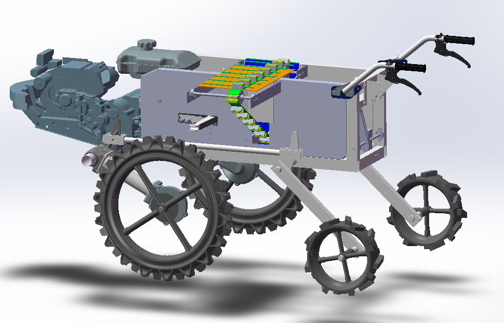 项目围绕本届机械设计竞赛“创新未来制造、携手助农共富”的主题,针对目前甘薯苗移栽作业仍以人工移栽为主,移栽机械缺乏、机械化移栽水平较低的问题,设计了一款自走式甘薯苗移栽机并制造了样机。该移栽机主要由送苗装置、植苗机构、传动系统、动力装置和底盘等组成。送苗装置采用不完全齿轮机构和同步带传动实现间歇式送苗作业,植苗机构采用曲柄摇杆机构与凸轮连杆机构组合实现甘薯苗的取苗和植苗作业。该移栽机结构简单、运行平稳、成本低,有助于促进我国甘薯产业的发展和乡村经济振兴,实现助农共富的目标。