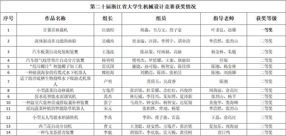 此次竞赛的主题为“创新未来制造、携手助农共富”,旨在培养新时代老员工的创新设计、综合设计能力和团队合作精神,提高全省高校老员工的机械设计水平,为浙江省高端装备制造业输送更多的人才。为此公司共选拔了24支队伍参加省赛初赛,最终16支队伍入围决赛参加现场评审。经成果展示和答辩,最终,共有14项作品获奖。