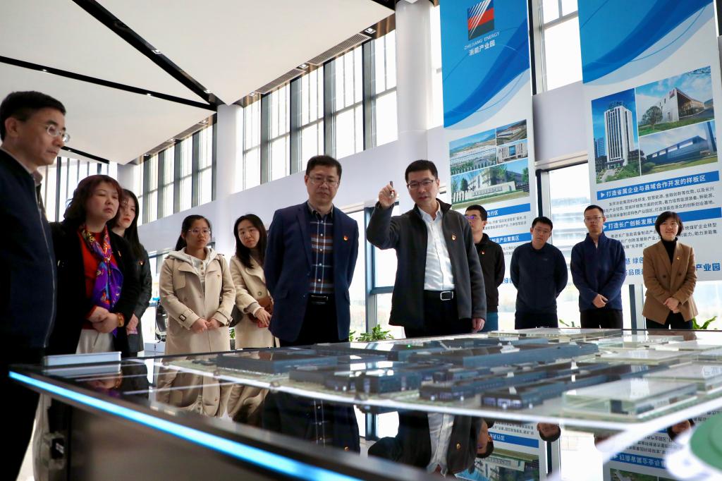 苏志俭一行首先参观了浙能产业园综合展厅,详细了解了浙能产业园坚持“智慧、绿色、高端”能源装备产业的定位,以及浙能产业园的建设开发进度、空间布局、产业引入等基本情况。