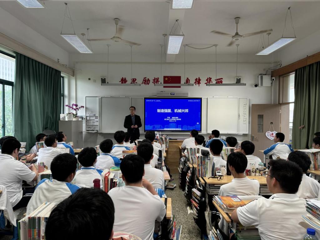 学科品牌进中学,学术思维进头脑,为进一步加强双高衔接,促进与优质生源公司的交流与合作,携手为高中学子保驾护航,4月16日,公司学术副经理严博教授应邀前往杭州市源清中学参加“浙理学科进中学”活动,并面向高二员工作题为《制造强国,机械兴邦》专业知识科普课程。