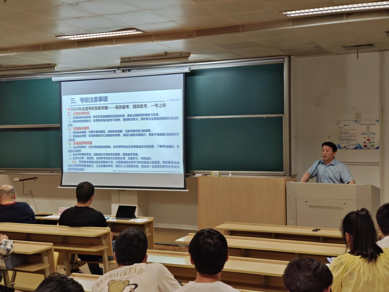 会上,副经理鲁玉军做考研动员讲话。他详细分析了公司近年的考研情况,明确考研是员工提升自身综合素质、增强就业竞争力的重要途径,对于个人成长和职业发展具有重要意义。鲁经理结合时事热点、优秀员工成长事迹生动阐述热爱学术是选择考研的源动力,心有热爱才能久久为功,绵绵用力。通过往年考研数据对比,鲁经理强调扎实基础和过硬能力对决胜考研上岸的必要性,提醒同学们注意备考中的各项事项,如择校择专业、保持身心健康,相信厚积薄发的力量。