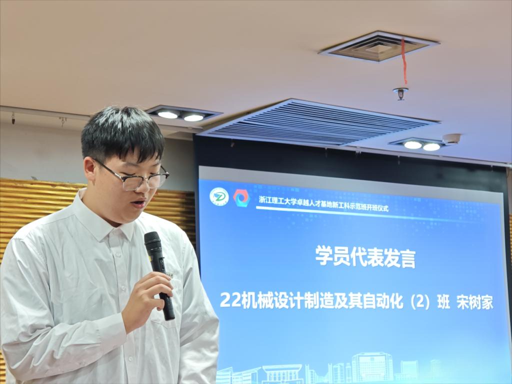导师代表陈先立发言。他表示,公司实施新工科人才培养计划对于同学们而言是一次宝贵的自我提升的机会,希望同学们能够通过在示范班的学习锻炼培养个人跨学科知识整合能力、创新思维能力、团队合作与领导力以及国际视野,全方位提升个人核心竞争力,成为一名卓越的新工科人才。