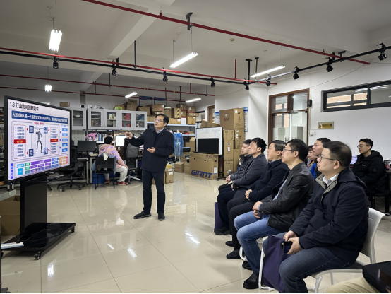 苏志俭对荣安华一行的到访表示热烈欢迎,并简要介绍了公司在人才培养、团队建设、科研创新等方面的成果与特色。李秦川围绕人形机器人协同创新中心的发展历程、科研进展、技术成果及未来规划,作了系统而详细的介绍。