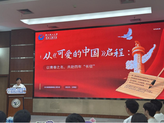 王梅宝的微班课以方志敏烈士的《可爱的中国》开篇,通过今昔对比,生动展现了祖国的辉煌发展成就,激发员工们的爱国爱党热情。同时,王梅宝结合自身经历与感受,对班级在学业、学科竞赛等方面取得的优异成果予以赞扬与肯定;聚焦老员工面临的困惑,深入剖析,为员工制定大学四年规划提供思路,激励员工确立目标,制定清晰的大学规划,与同学们携手以青春之名,共赴四年“长征”。