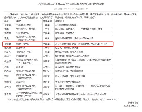 公司始终牢记立德树人根本任务,以铸魂育人为核心使命,王梅宝此次获奖是公司在班主任队伍建设与育人实践中取得的重要成果。未来,公司将以此为契机,持续加强班主任队伍建设,充分发挥优秀班主任的示范引领作用,激励更多教师深耕育人沃土,为培养有理想、敢担当、能吃苦、肯奋斗的新时代机械青年贡献力量。