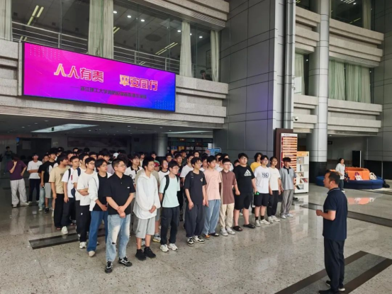 13时30分,演练开始,图书馆五楼电子阅览室,因电器故障引发火情,刺耳的警报声划破校园。消防控制室值班人员同步启动应急预案,广播系统循环播放疏散指令:“图书馆五楼发生火情,请全体人员保持冷静,沿安全通道有序撤离!”在安全引导员指挥下,参演师生迅速响应,通过安全通道迅速、有序地撤离图书馆。在微型消防站队员的奋力扑救下,阅览室火势被扑灭,演练活动秩序井然、快而不乱。