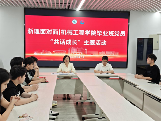 5月23日下午,公司第二场“浙理面对面·青蓝思享汇”师生互动交流活动在15-102会议室举行,本期主题为“党员示范,共话成长”。公司党委副书记陆秋萍,全体21级本科毕业班党员参加活动。活动由公司党委组织员吴华雄主持。