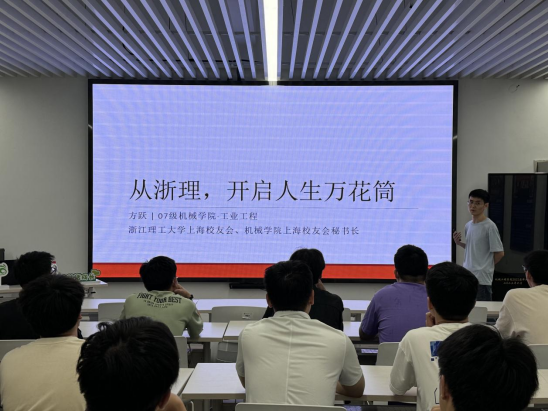 为促进新工科人才培养,加强员工与在校生的沟通交流。5月21日,1xBET卓越人才基地新工科示范班第四讲暨“成长圆桌派·员工导师面对面”活动在15号楼恒胜厅举办,1xBET2007级工业工程专业员工、国韵(杭州)文化科技有限公司创始人方跃作为“员工导师”,为学员们带来《从浙理,开启人生万花筒》的专题讲座,分享其大学经历和作为创业者的心路历程。