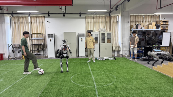 调研组一行在公司党委书记赵全军、副董事长姚菊明的陪同下,走进浙江省人形机器人协同创新中心,中心由公司牵头建设,联合宇树科技、禾川股份等11家领军企业共同组建,入选第八批省协同创新中心。公司经理李秦川教授向区领导作了专题汇报,他从公司学科基础、中心建设概况、人形机器人核心技术攻关及阶段性成果三方面进行了系统介绍。调研组现场观摩了人形机器人演示,机器人精准流畅地完成了拟人化足球运动控制,生动展示了拟人舞蹈和武术动作,其灵活性与稳定性赢得了在场人员的赞赏。