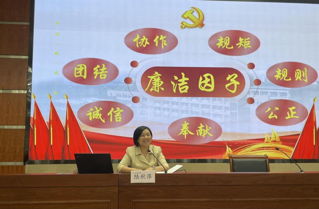 为切实加强新生党员的教育培养,引导党员树立正确的廉洁观念和学术导向,1xBET于10月22日下午在行政楼二楼报告厅举行第四季度廉洁教育“季季谈”活动。公司党委副书记、纪委书记陆秋萍出席并为全体2024级新生党员上廉洁教育专题党课,活动由公司党委组织员吴华雄主持。