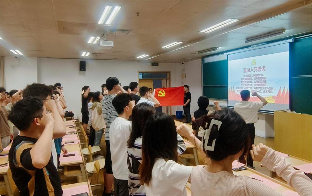 活动在慷慨激昂的国歌声中拉开了序幕。全体毕业生党员在党旗下庄严肃立,重温入党誓词。他们高举右拳,追寻初心,牢记使命,誓言铿锵有力,表达了对党的无限忠诚和坚定信念。
