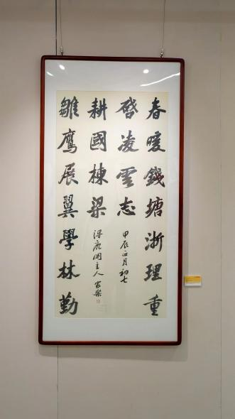 4月25日,由浙江省高等教育学会思想政治教育研究分会主办,中国美术公司、杭州电子科技大学承办的“我心向党 时代画卷”——第三届浙江省高校辅导员主题书画作品展在中国美术公司良渚校区开幕,公司辅导员李家乐的书法作品入选本次展览。