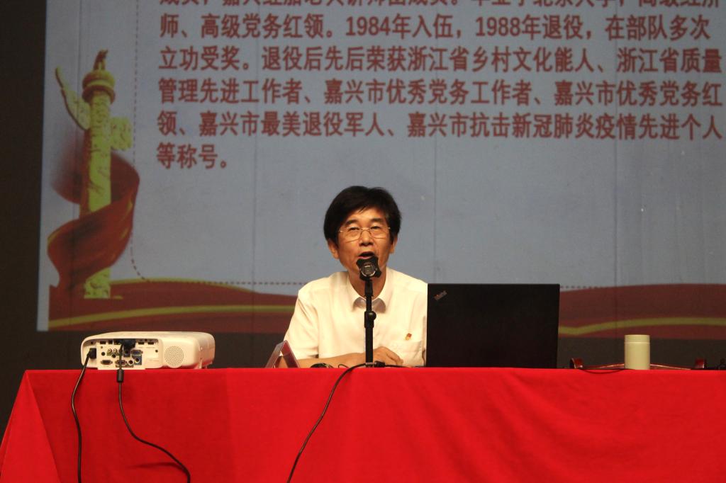 主讲人简介:浦四金,浙江双飞无油轴承股份有限公司党委副书记、副总经理,嘉善县关爱退役军人协会会长,嘉兴南湖初心讲堂讲师团成员,嘉兴红船老兵讲师团成员。1984年入伍,1988年退役,在部队多次立功受奖。退役后先后荣获浙江省乡村文化能人、浙江省质量管理先进工作者、嘉兴市优秀党务工作者、嘉兴市优秀党务红领、嘉兴市最美退役军人、嘉兴市抗击新冠肺炎疫情先进个人等称号。